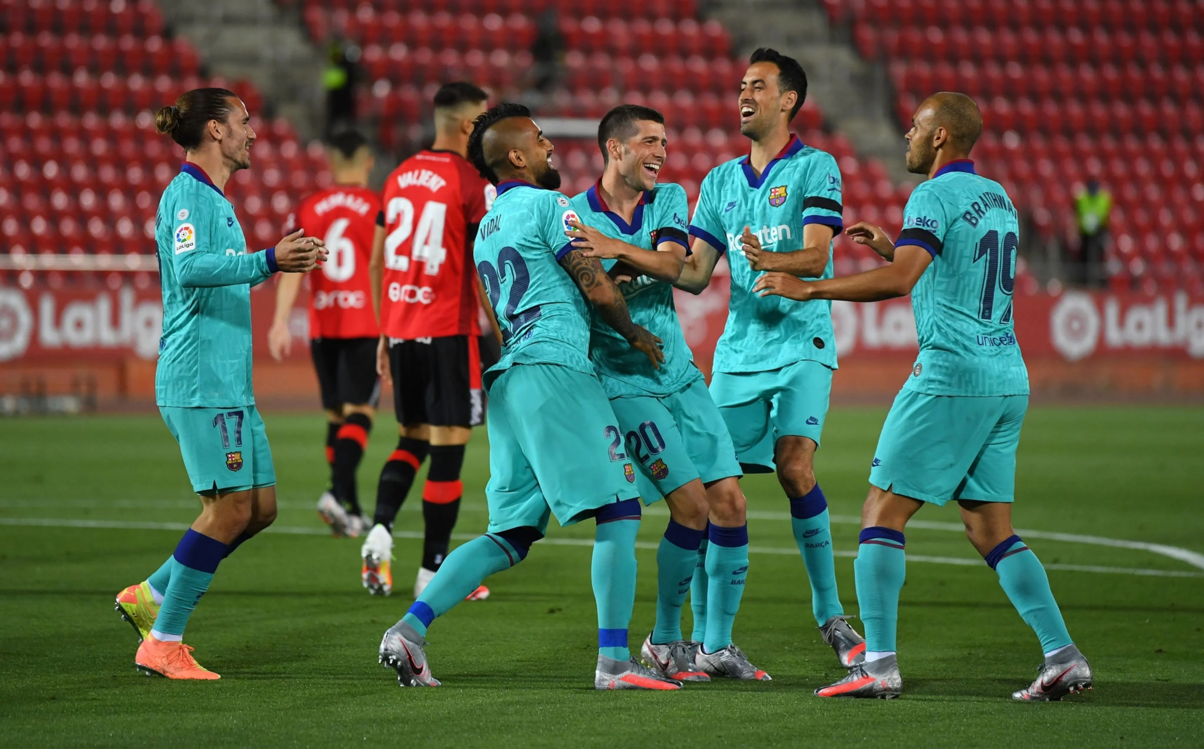 Барселона відновила сезон матчем на Балеарах з кількома несподіванками у складі. Так, на поле не вийшов Умтіті, замість якого з'явився Араухо (Лангле пропускав тур через перебір жовтих), а Луїс Суарес залишився у запасі – натомість, в основу поставили Брейтвейта. Ракітіч також розпочинав на банці, віддавши свою позицію Відалю.