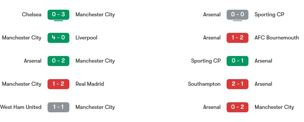 Останні 5 матчів Манчестер Сіті та Арсенала