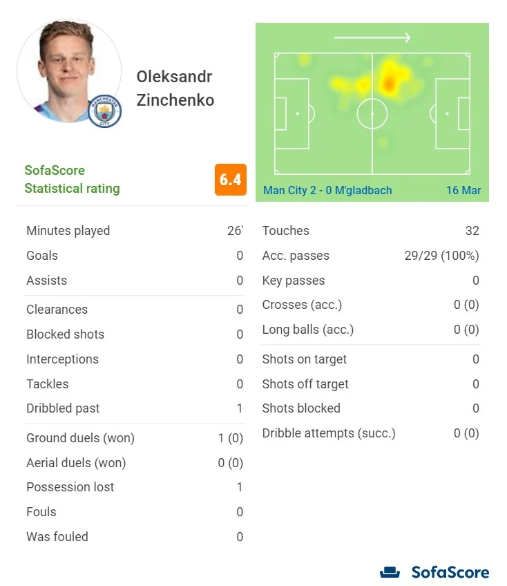 "Містяни" вдруге обіграли Гладбах з рахунком 2:0 і спокійно вийшли у чвертьфінал Ліги чемпіонів. Там суперниками Зінченка можуть стати Ліверпуль, ПСЖ, Борусія Д, Порту, Реал, Баварія (на 99%) і Челсі або Атлетіко.