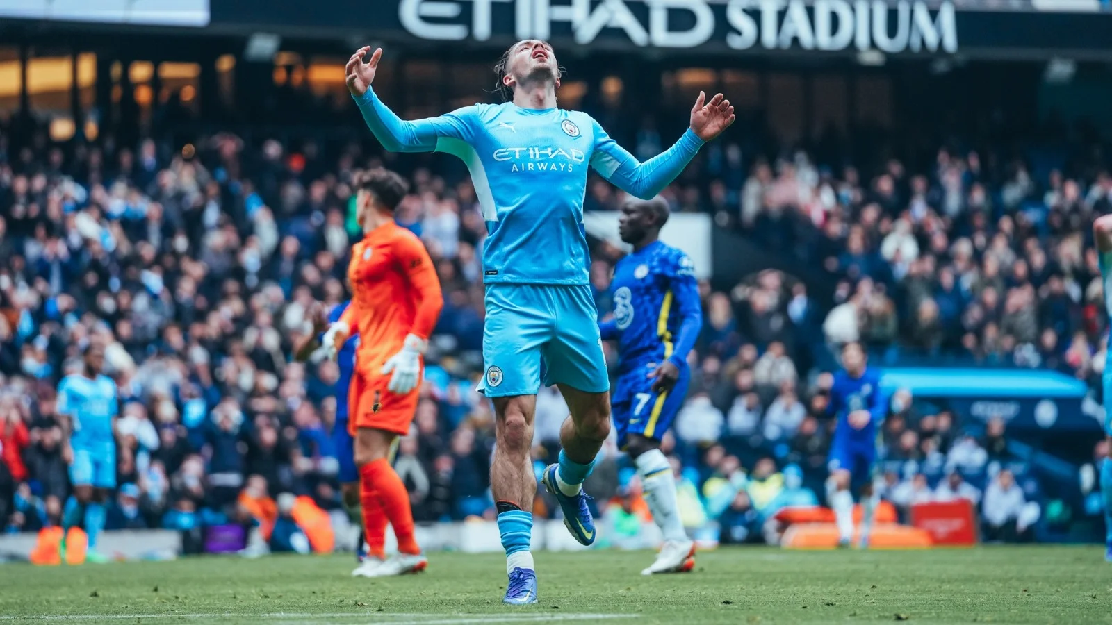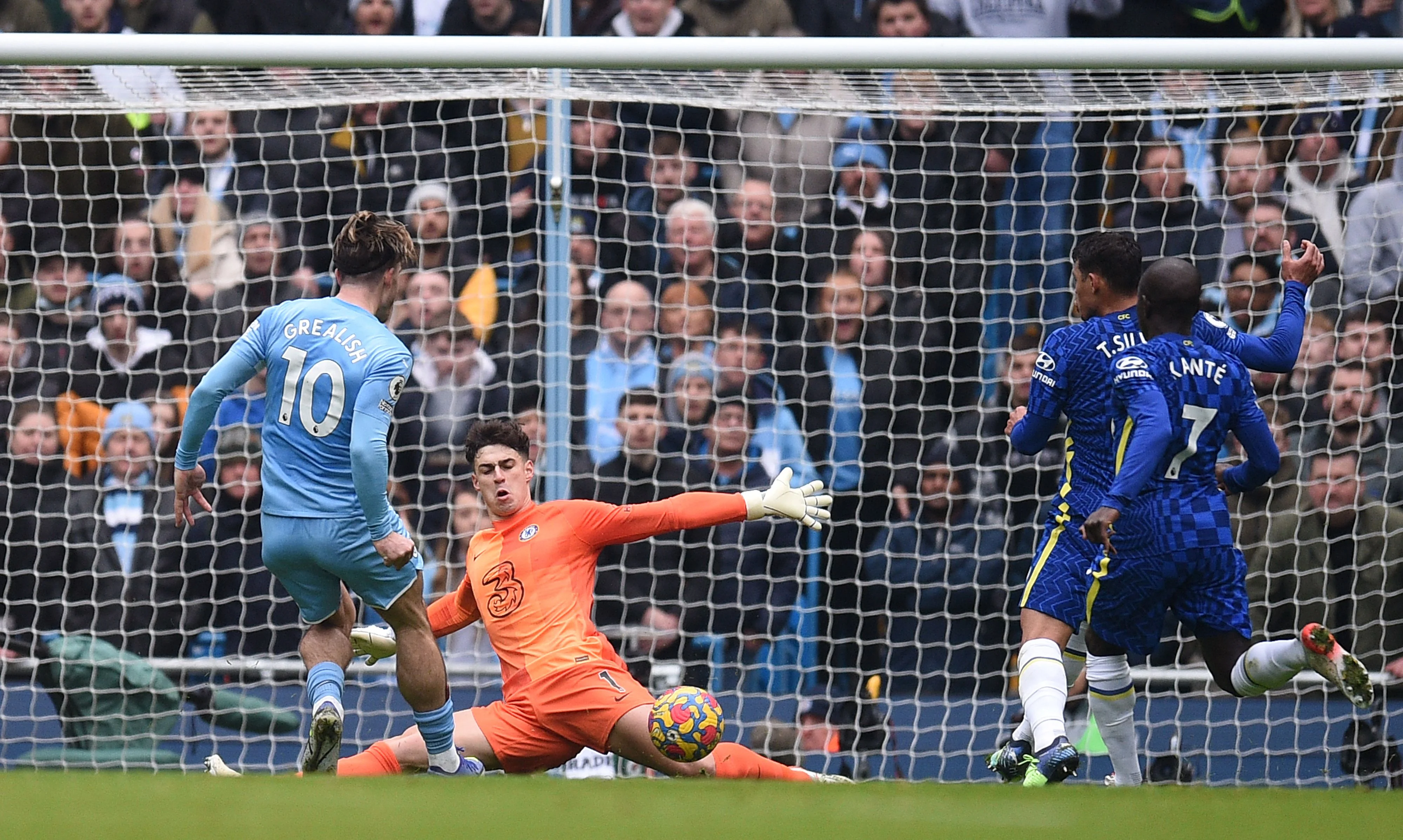 Манчестер Сіті мав відкривати рахунок наприкінці першого тайму. Знову спрацював високий пресинг, де Брюйне зіграв агресивніше та перехопив м'яч перед штрафним майданчиком. Гріліш опинився сам на сам з Кепою, але голкіпер Челсі був на висоті.