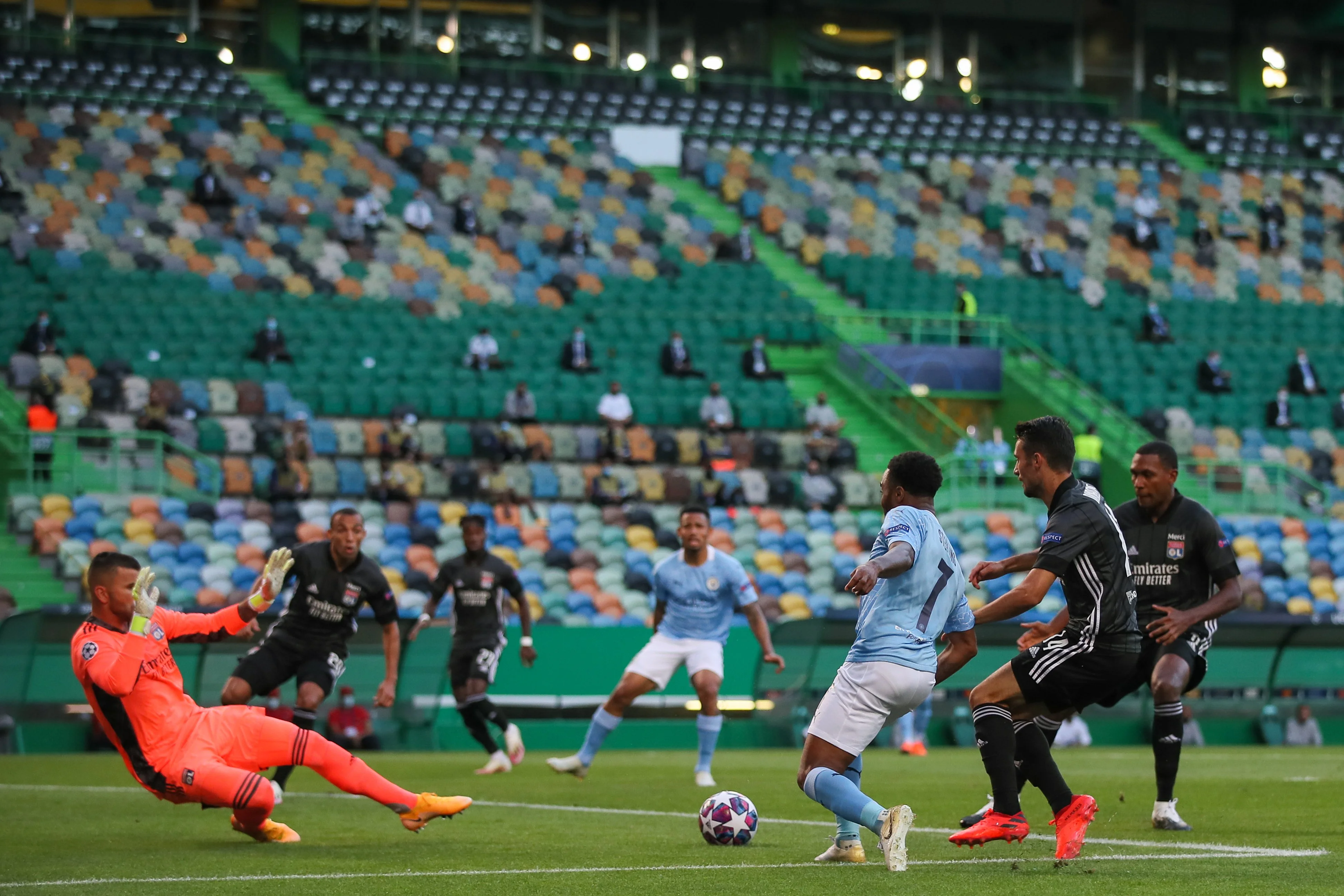 Манкуніанці непогано стартували, одразу ж захопивши контроль над м'ячем. Вже на 3-й хвилині вони ледь не відкрили рахунок – це Стерлінг отримав розрізний пас від Канселу й з лівого краю штрафного віддавав на порожні ворота, однак один із захисників встиг вибити м'яч. Втім, Ліон не збирався виступати в ролі спостерігача: на 5-й хвилині одну з подач Вокер скинув у власні ворота, а на 9-й Марсал потужно пробив з лівого кута карного майданчика – в обох випадках "містян" виручив Едерсон. До 20-ї французи провели ще кілька контратак без гострого завершення, а от у британців нічого, крім невдалих кросів, не виникало.