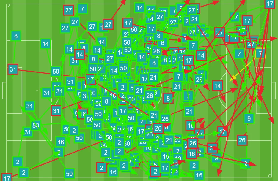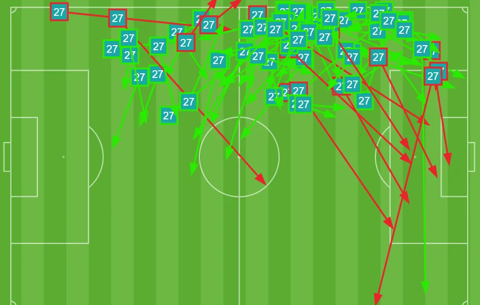 Варто відзначити і деяку банальність у атакувальних діях Ліона. Так, у першому таймі французи через лівий фланг провели аж 52% атак (і навіть 54% у перші півгодини), а крім трьох голів у Ліона й моментів ніяких було – це підтверджується як візуально, так і коефіцієнтом очікуваних голів. Ліон має показник xG від 0,8 (версія Infogoal) до 1,0 (версія Майкла Кейлі). При цьому "ткачі" могли пропустити мінімум тричі – і це в яскраво вираженій оборонній моделі.