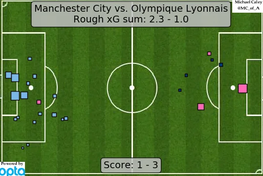 Оцінюючи поєдинок Манчестер Сіті проти Ліона, можна спиратися на голу статистику, в якій у "містян" хороші показники: 18:7 за ударами, 9:3 за пасами під них, 14:6 за обіграшами, три очікуваних голи, удари по порожніх воротах, 24% гри на третині поля французів (проти 16% на третині англійців) – все говорить про відскок "ткачів" та нещастя грошовитого дрім-тім. Втім, при детальному розгляді можна заявити про заслуженість фіаско.