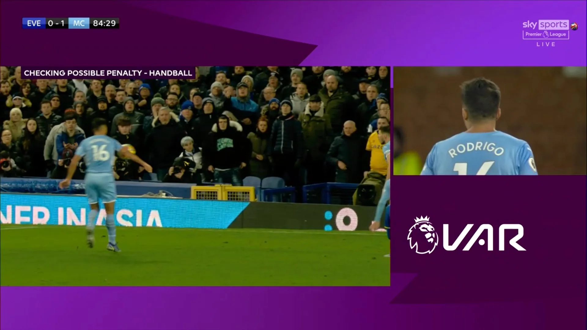 На 82-й хвилині Сіті таки вийшов вперед. Філ Фоден після помилки Майкла Кіна у два дотики розібрався з Пікфордом. Невдала гра центрбека Евертона призвела до пропущеного м'яча. Практично одразу "іриски" просили пенальті – Родрі у простій ситуації торкнувся м'яча рукою, але VAR не побачив підстав для 11-метрового. Дивно. Пощастило "містянам".