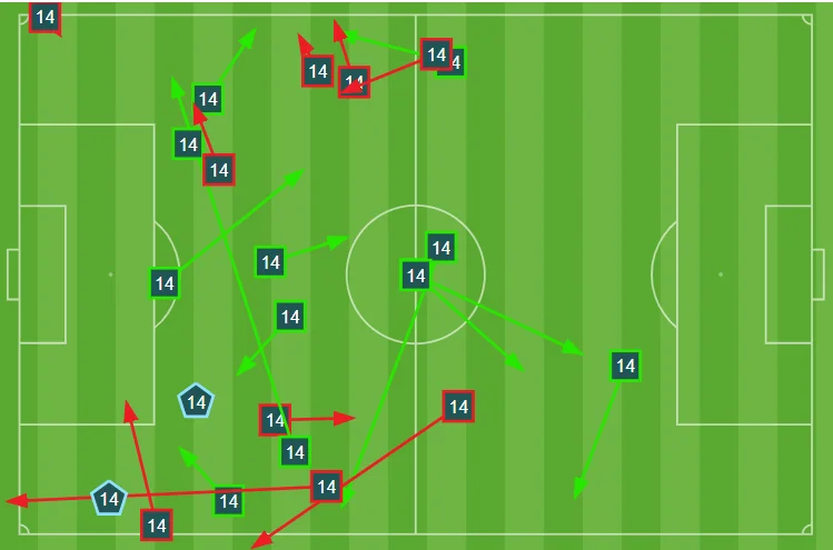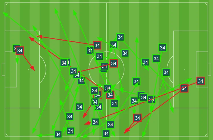 Карта передач Джаки прекрасно демонструє, через які зони збиралися атакувати гості та яким чином туди відправляли м'яч.