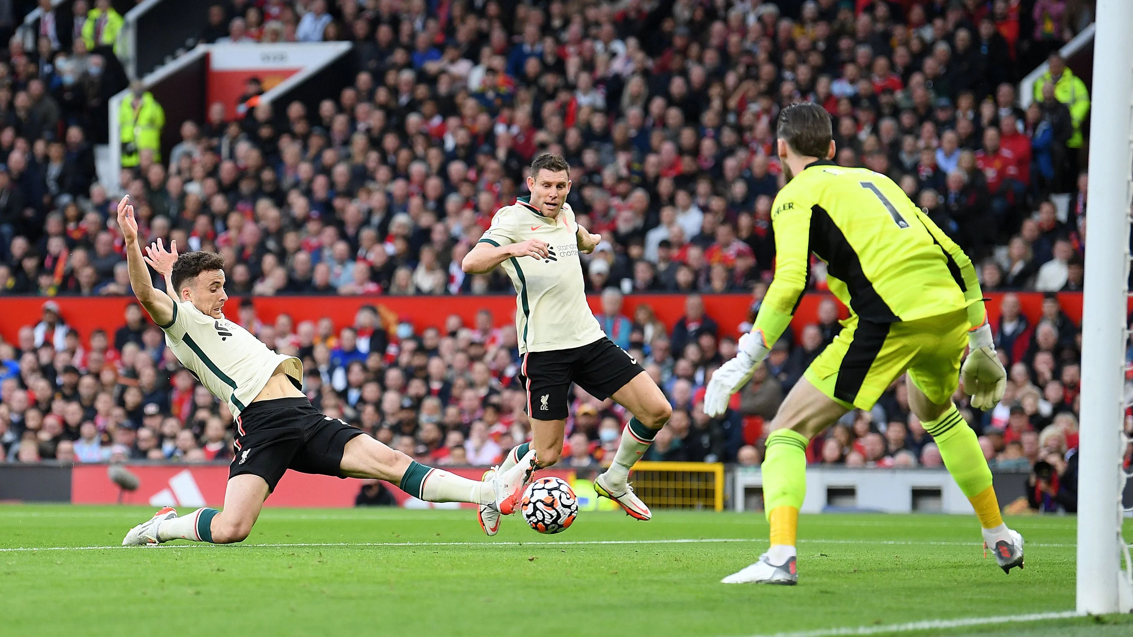 Фінальні півгодини двобою після такого інциденту перетворилися на формальність. Не дивно, що десятки глядачів потягнулися до виходів. Так, обидві команди ще мали нагоди забити. Де Хеа вкотре довів, що перебуває в чудовій формі, коли кінчиками пальців витягнув з-під поперечини класний постріл Александера-Арнольда. Ліверпуль же в одному з епізодів врятувала поперечина.
