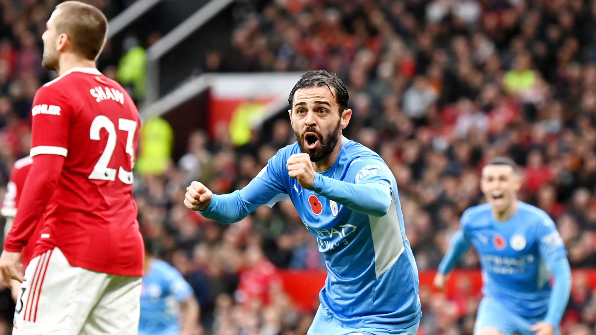 Однак, навіть іспанська "машина" не витримав постійного тиску на ворота Юнайтед. Над Олд Траффорд якраз посилився дощ, як Ман Сіті запустив нову атаку на 45-й хвилині: Канселу виконав черговий навіс із флангу, Шоу з якогось дива вирішив, що м'яч покине поля, а ніким неприкритий Бернарду Сілва замкнув дальню стійку – Де Хеа врятувати не зміг, випустивши мокру сферу за лінію.