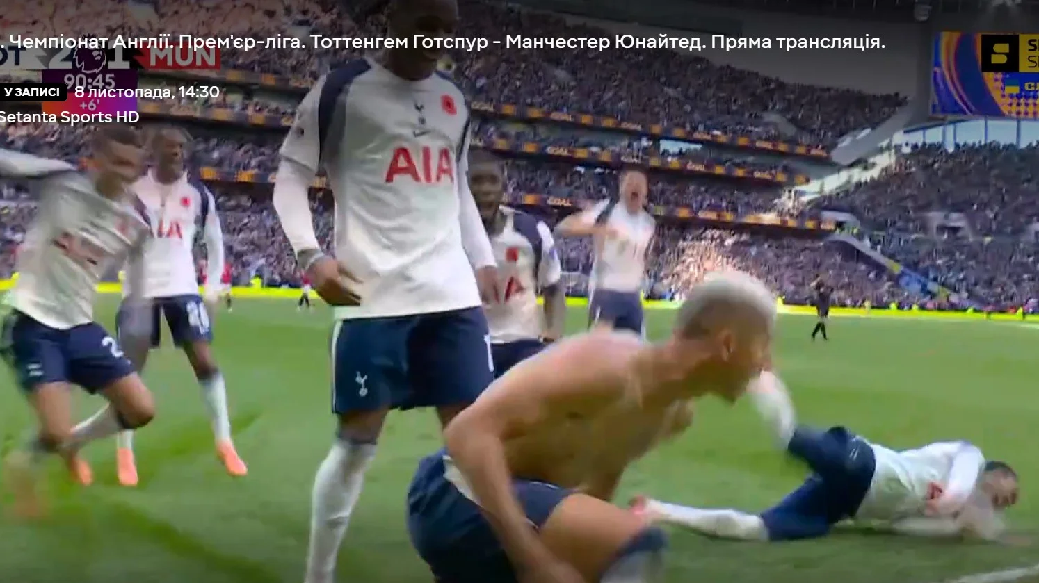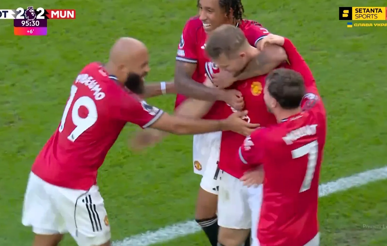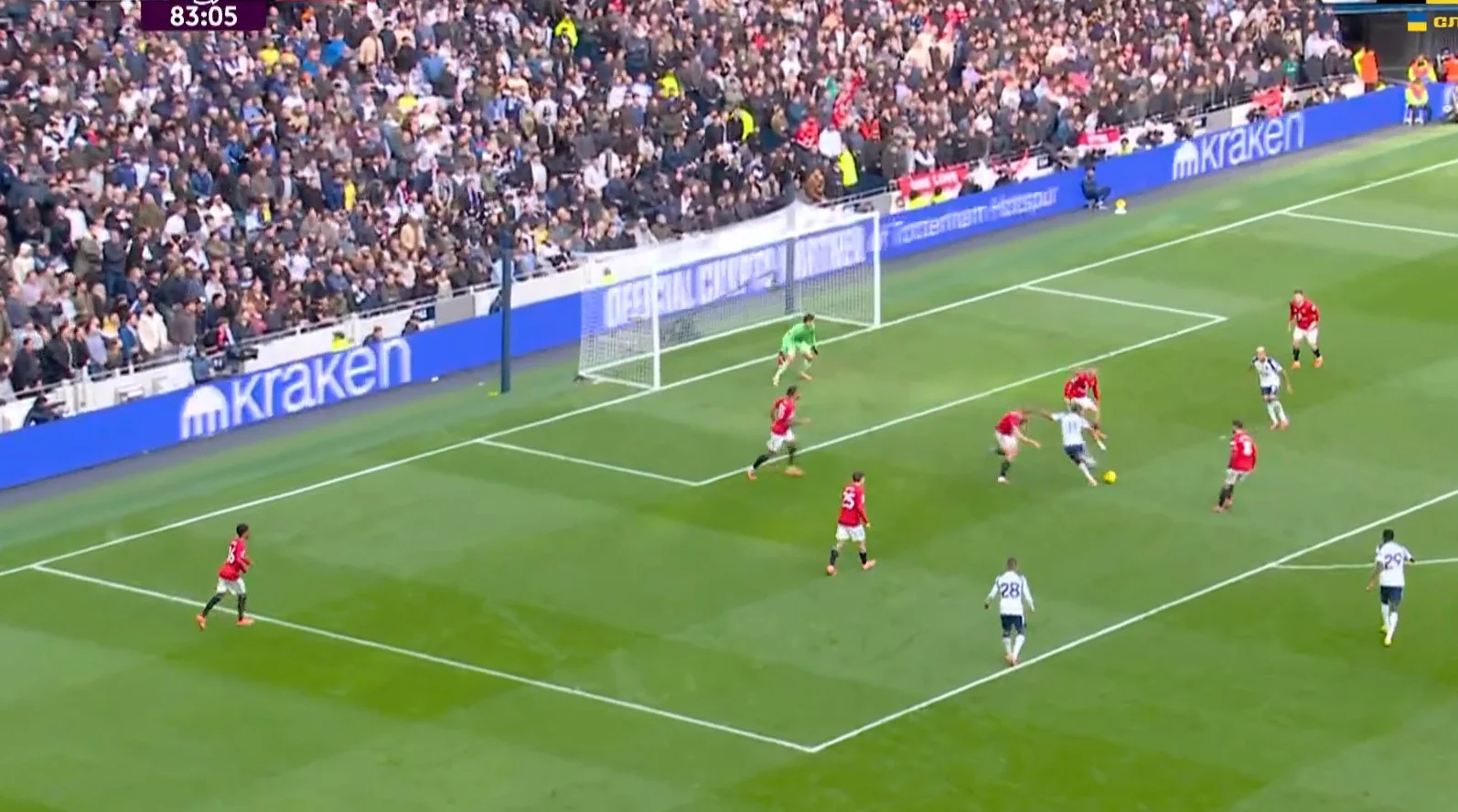 Лондонці продовжили атакувати та змогли забити на 90+1 хвилині! Після розіграшу кутового Одобер отримав м'яч за межами штрафного і пробив, а Рішарлісон головою підправив м'яч у кут – 2:1! Угарте не встиг вискочити, залишивши бразильця в грі. Здавалось, що Тоттенхем епічно вирве перемогу, але Манчестер Юнайтед відігрався на шостій компенсованій хвилині. Манкуніанці всім складом пішли в атаку (навіть Ламменс), а навіс Бруну Фернандеша на дальню стійку замкнув Де Лігт, 2:2 на 90+7 хвилині!