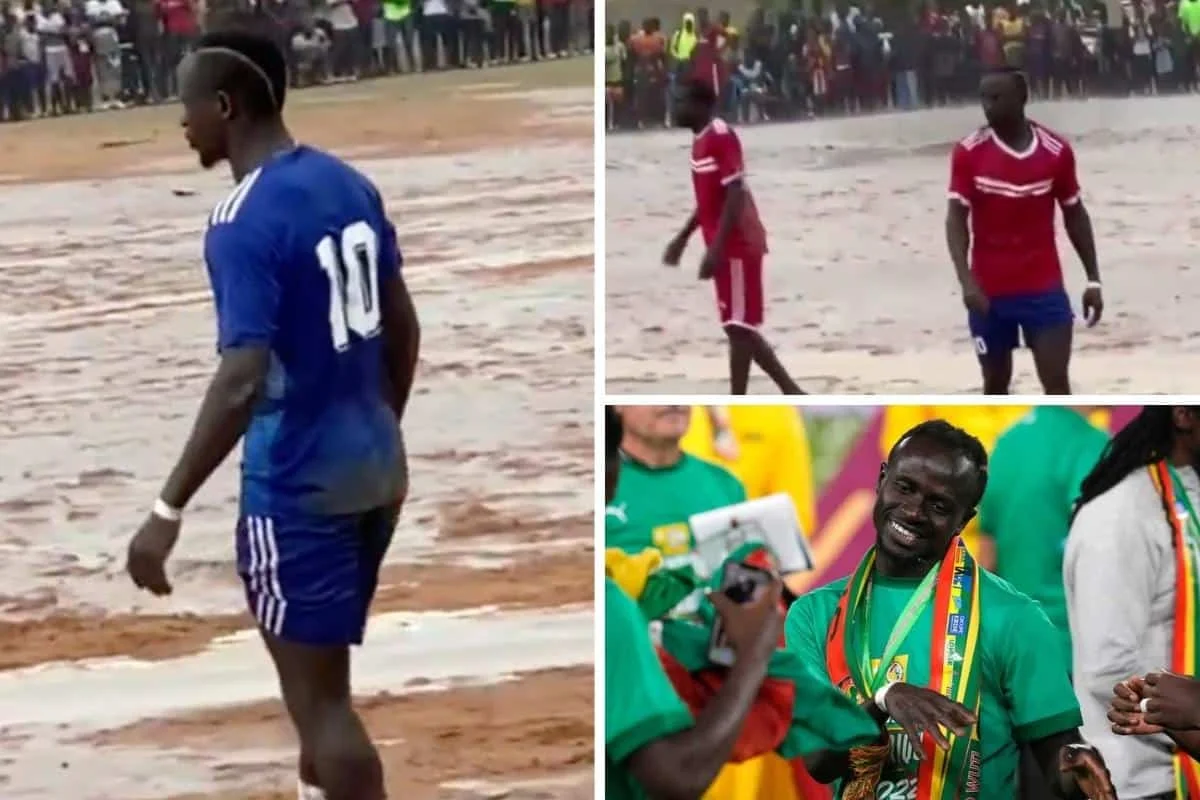 Мане після фіналу Ліги чемпіонів приєднався до збірної Сенегалу та провів два матчі, в яких забив всі голи команди. Далі форвард поїхав у рідне містечко Бамбалі, де зіграв під дощем на болотистому полі з друзями дитинства. Компанію йому склали Папісс Сіссе та Ель-Хаджі Діуф.