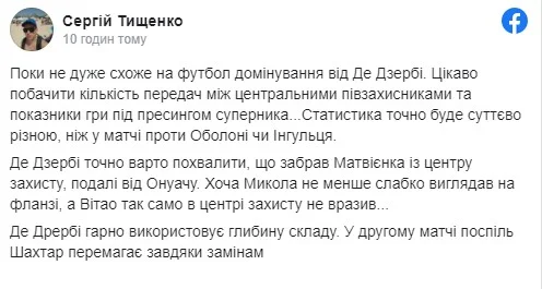 Автор Футбол 24 і Gazeta.ua Сергій Тищенко – про позицію Матвієнка і заміни Де Дзербі.