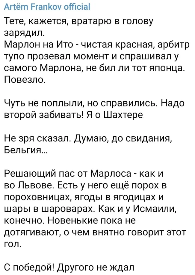 Головред журналу Футбол Артем Франков вважає, що Шахтар повинен був залишитися у меншості після грубого фолу Марлона проти Іто.