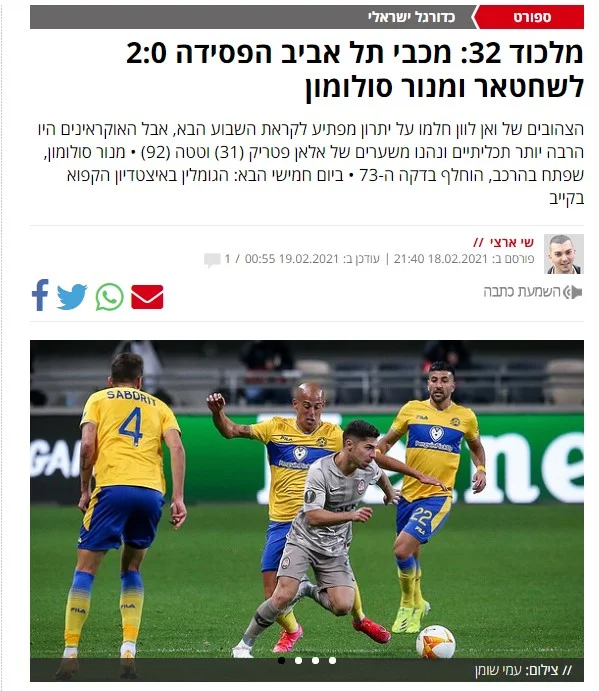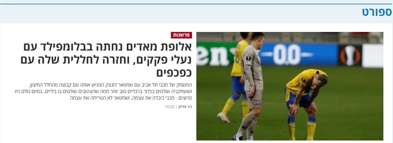 Маккабі зустрівся з Шахтарем, який виглядав чемпіоном Марсу. Ми роками не грали проти таких суперників. Гравці української команди краще контролюють м'яч ногами, ніж ізраїльтяни руками. Кожна дія футболіста Шахтаря – кожен пас, кожен обіграш – була покрита 10-сантиметровим шаром золота. Разючий контраст з оголеним залізом, з яким Маккабі щотижня стикається в чемпіонаті.