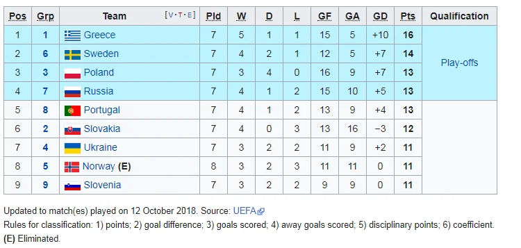 Українців влаштує нічия або мінімальна перемога господарів у матчі Північна Ірландія – Словаччина. Перемога гостей з великою ймовірністю виведе їх в топ-4, тріумф господарів не з розгромним рахунком дасть нам перевагу (у попередній грі вони розійшлися миром). Далі потрібно, аби Португалія зіграла внічию проти Боснії і Герцеговини, як і Австрія проти Росії, а ми розгромно здолали Нідерланди.