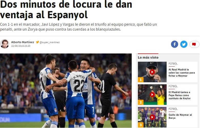 Рупор каталонської преси, описуючи "страждання Еспаньйола" у матчі проти Зорі, виділяє фігуру аргентинського новачка "папуг" Матіаса Варгаса, відомого на своїй батьківщині під прізвиськом "Мавпочка":