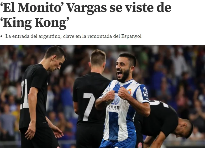 У другому таймі Еспаньйол почав діяти інтенсивніше завдяки свіжому Віктору Санчесу, Феррейра зрівняв рахунок, але ключовою виявилась поява Варгаса на 71-й хвилині. 22-річний аргентинець додав швидкості та гостроти в атаці, ефектно довершивши ремонтаду "папуг". "Мавпочка" перевтілилась у "Кінг Конга". Зараз він – єдиний гравець Еспаньйола, який демонструє найвищий рівень гри".