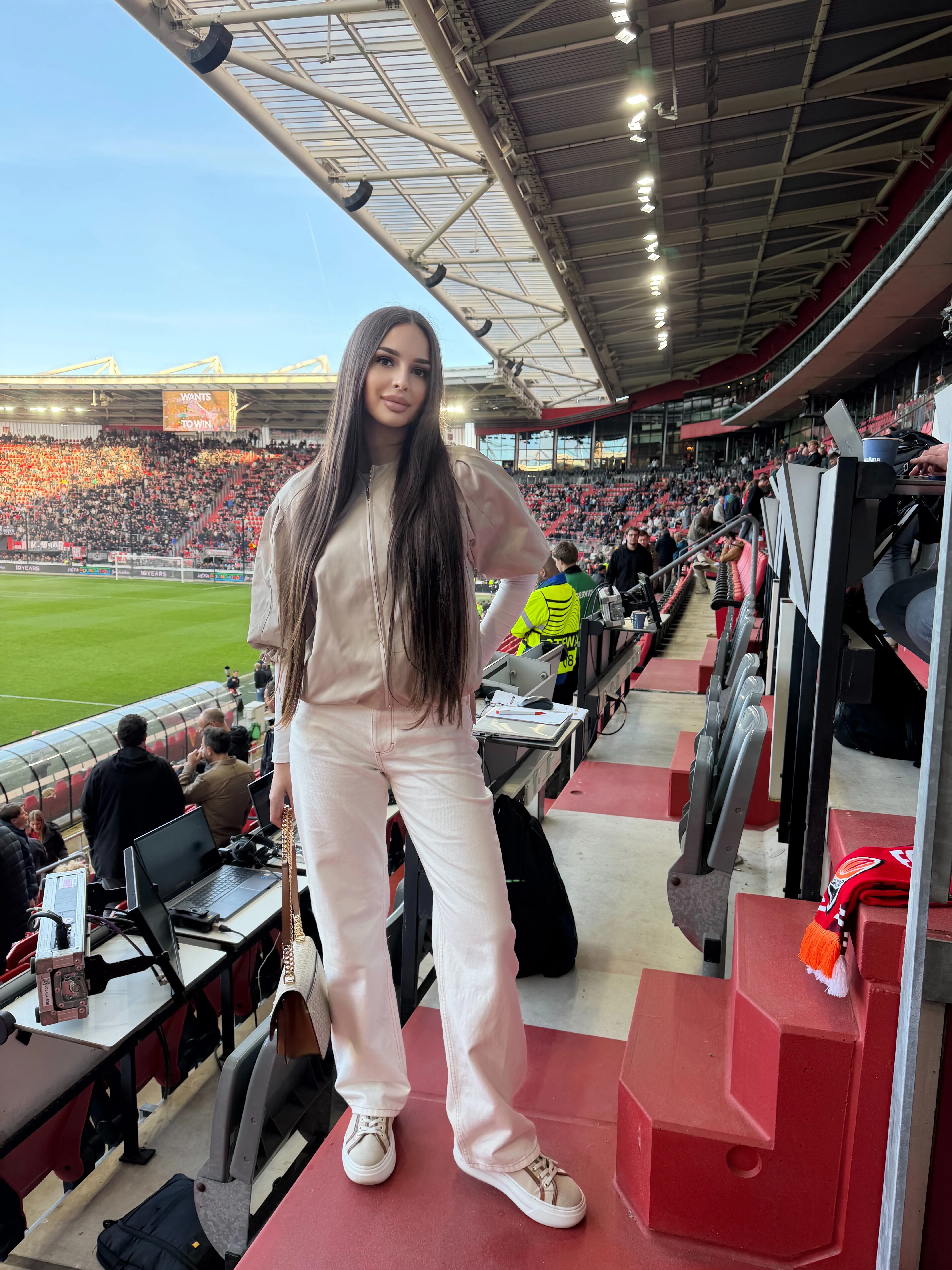 Мій футбольний день розпочався задовго до гри – вже о 16:00 я була біля AFAS Stadion. І перше, що кинулося в очі, – відсутність звичного для таких матчів хаосу. Було достатньо часу роздивитися все довкола: фаншоп, територію стадіону, людей. Завдяки продуманій організації простору взагалі не відчувалася та кількість уболівальників, яку згодом побачила вже на трибунах. Жодних черг, жодного надмірного шуму – лише невеликі групи людей, які спокійно говорили про футбол.