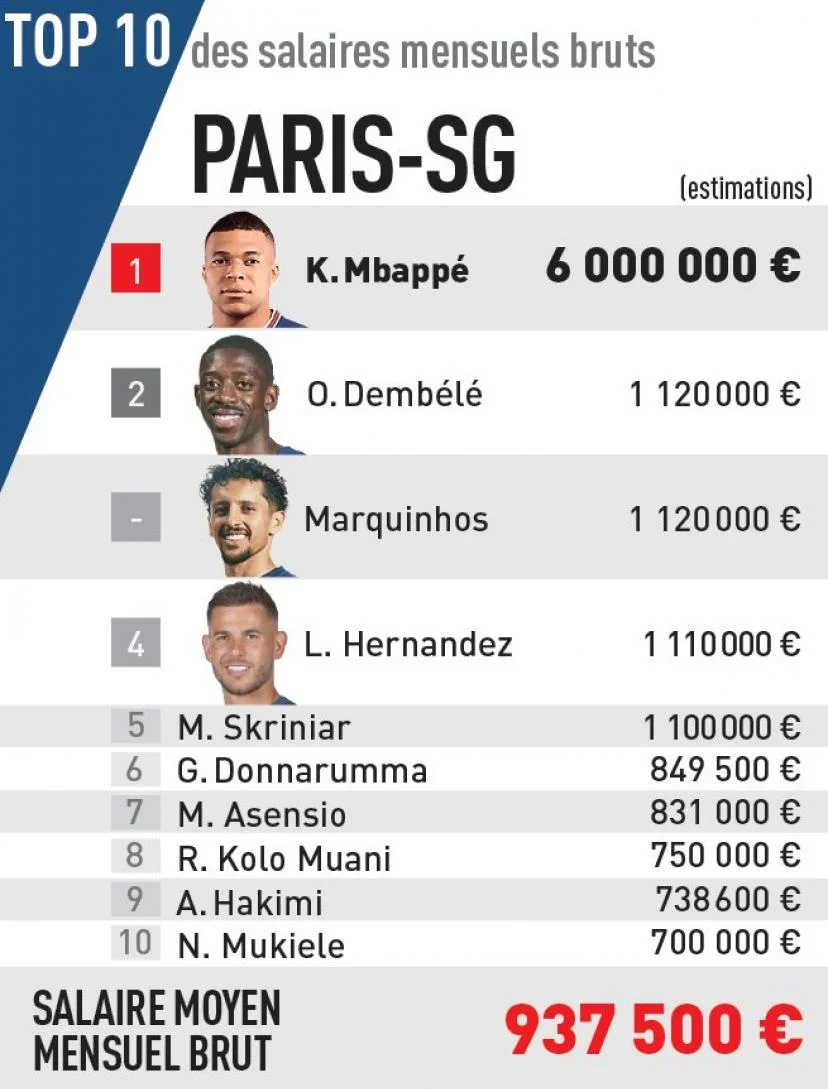 Французький нападник у 2022 році продовжив контракт з паризьким клубом на привабливих умовах. Згідно з даними L'Équipe Кіліан Мбаппе отримує найбільшу зарплатню в ПСЖ серед усіх гравців.