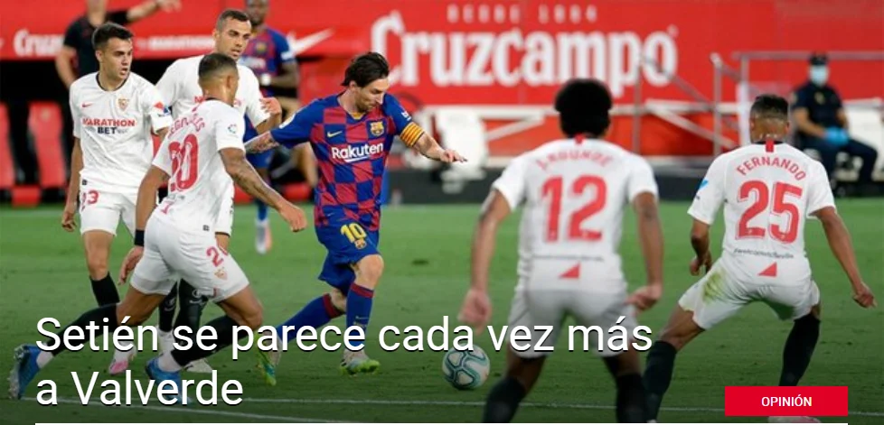 У Севільї малюнок був трохи іншим – Барса почала непогано, півгодини якісно пресингувала і повністю контролювала хід подій. Втім їхня перевага не втілилась у забиті м'ячі. Та й моментів особливо не було, переважно дальні удари або штрафні Мессі. За 90 хвилин – один хороший шанс Суареса з меж карного майданчика. З Сетьєном команда вчетверте не забиває в гостях проти серйозних суперників (Севілья, Валенсія, Більбао та Бернабеу). Дзвіночок, який насторожує і змушує розповідати про "сюрпризи", – зазначає Marca.