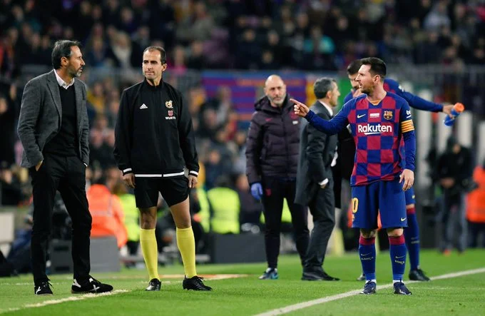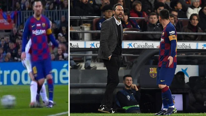 Ліонель Мессі та Вісенте Морено під час словесної перепалки / ФК Барселона
