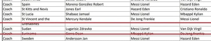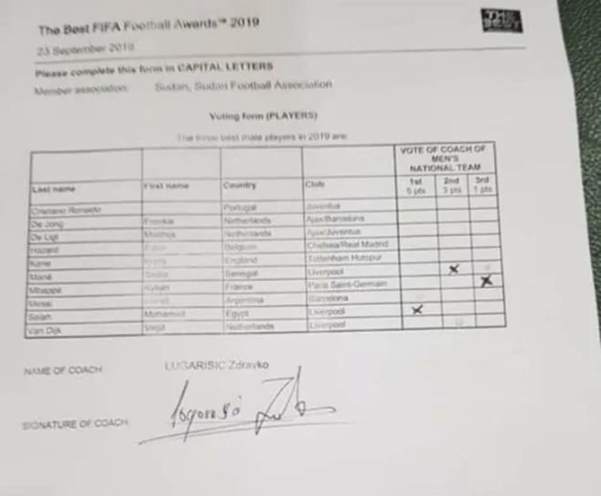 Якщо заяву капітана Нікарагуа ще можна поставити під сумнів, то головний тренер Судану Здравко Логарушіч надав справжні докази махінацій. Згідно з протоколом ФІФА, 53-річний фахівець до своє трійки включив Ліонеля Мессі, Вірджила ван Дейка та Садьйо Мане.