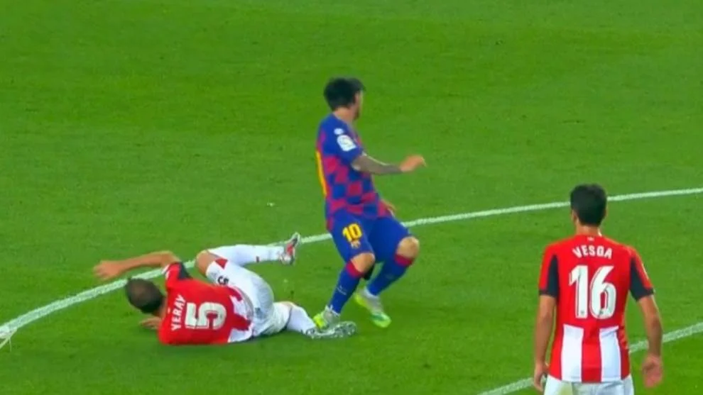 Головний арбітр матчу Барселона – Атлетік просто проігнорував порушення правил Ліонелем Мессі. Аргентинець фактично заробив вилучення за рахунку 0:0, наступивши на ногу Єраю Альваресу, який лежав на газоні. Однак ні Хесус Хіль, ні арбітр, який відповідав за VAR, жодним чином не відреагували на цей епізод.