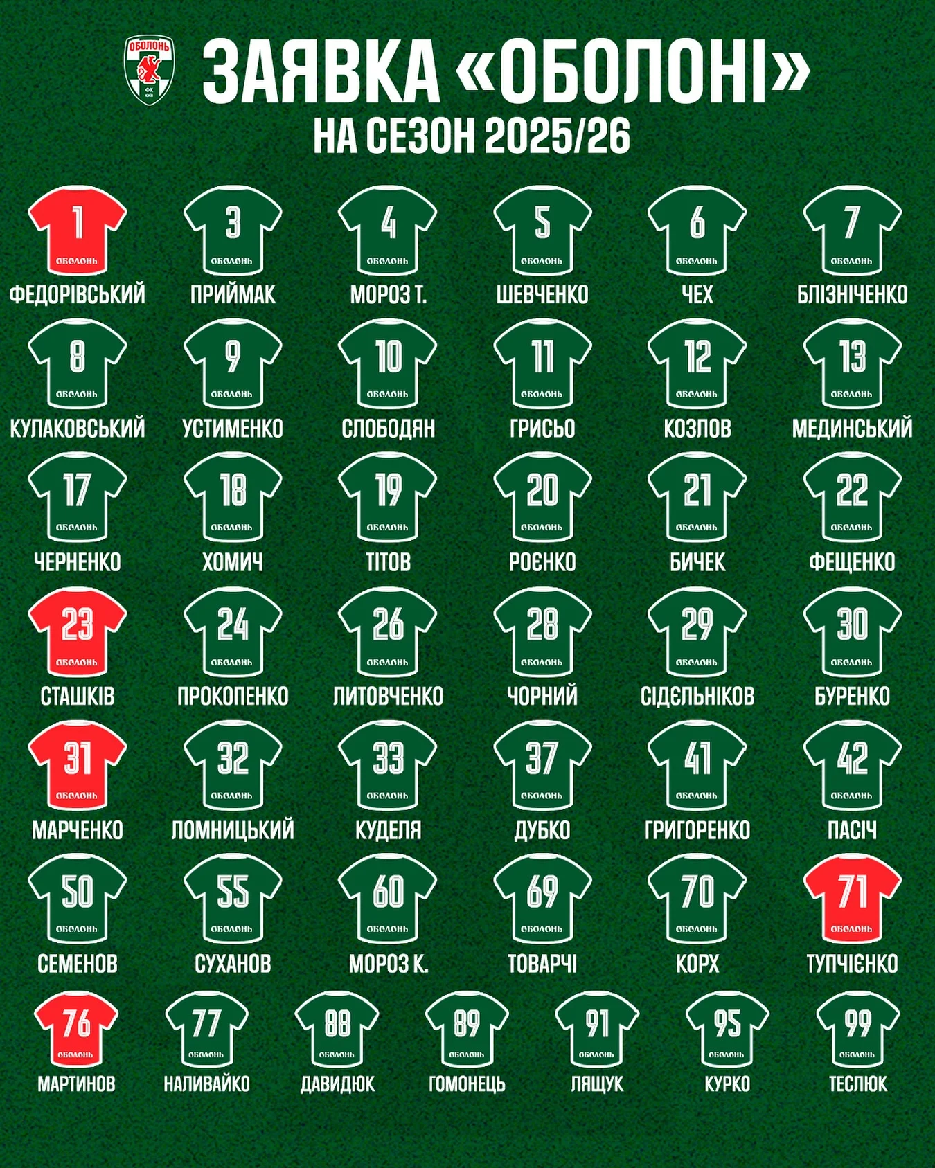 Оболонь: Марченко – Суханов, Семенов, Дубко, Шевченко – Чех, Черненко – Мединський, Кулаковський, Бичек – Устименко