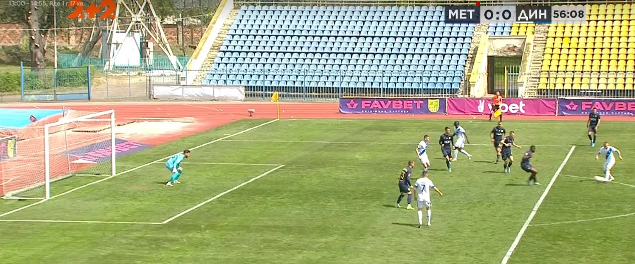 Волошин перекрутив у правий кут. Перед тим Назар непогано розвинув атаку з переведенням на Беніто, але Тимчик уже не вперше сьогодні запоров перспективну комбінацію. І знову Волошин з лівого краю накидав, захисники скинули прямо на Буяльського. Поспішив Віталій пробити в дотик, обравши найважчий спосіб виконання з технічної точки зору. Міг приймати, міг котити на Беніто, який уже не вперше зовсім сам у штрафному, однак не отримує пас. Жорстко дістається захисникам Динамо. Прядун в'їхав у спину Сироті, Дячук тримається за ребро після стику в центрі поля.
