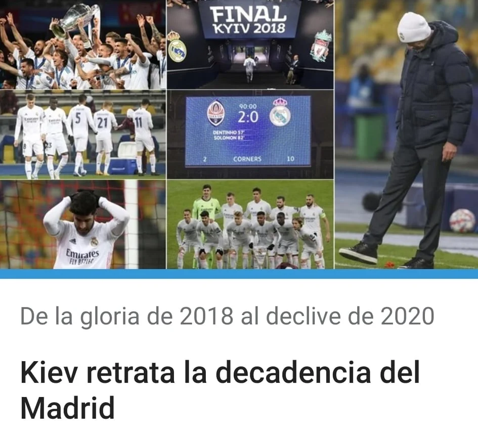 Велика гординя не дозволяє гравцям Реала налаштуватись належним чином, вони гадають, що інші команди, як Алавес або Шахтар, не бігають і не б'ються. Звісно, все посипалось після відходу Роналду. Зараз лише Бензема забиває – це не нормально для такого великого клубу. Можлива відставка Зідана? Так, є велика ймовірність, що його звільнять за умови невиходу з групи. Він перебуває на волосинці, адже Флорентіно не любить програвати, тим паче у Лізі чемпіонів", – зазначає один провідних фахівців популярного радіо Хосе Луїс Рохі Прієто.