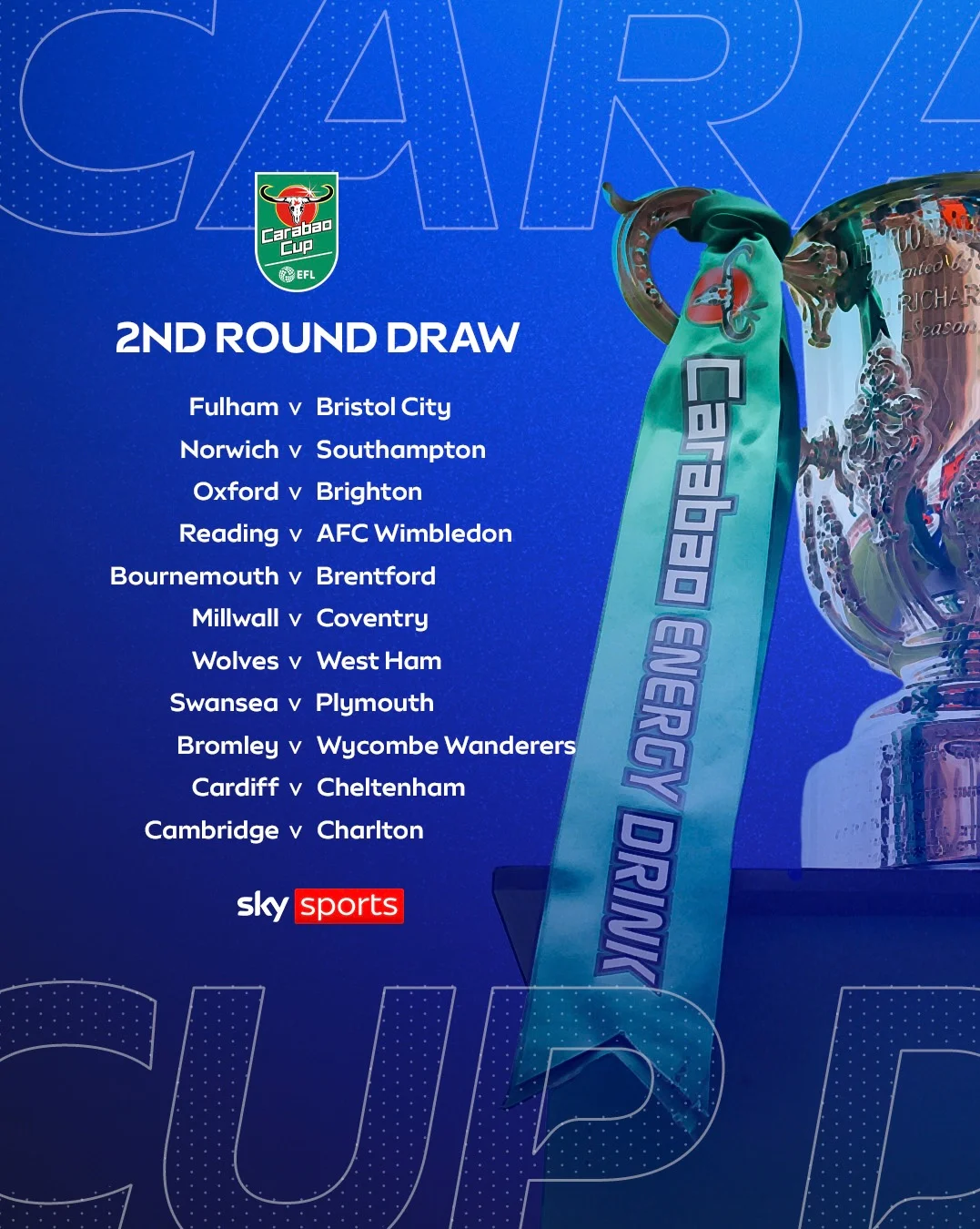 В Англії відбулося жеребкування чергового раунду Кубка ліги 2025/26.