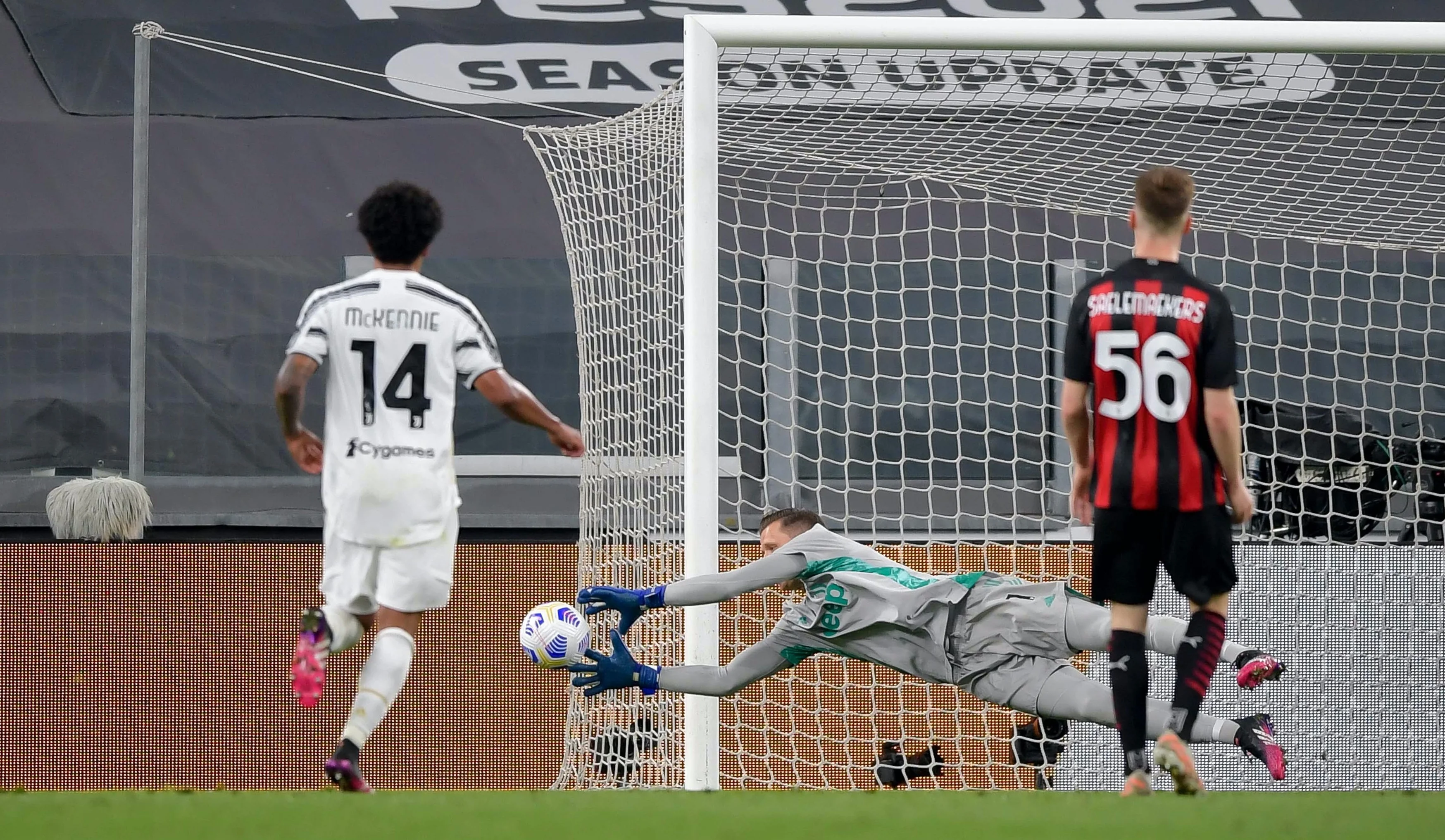 Другий тайм розпочався з удару Бентанкура, який парирував Доннарумма. Діас пробивав по воротах Юве і влучив у виставлену руку К'єлліні. Валері спершу не відреагував, але втрутився VAR. Головний арбітр особисто переглянув повтор і вказав на 11 метрів. До м'яча підійшов Франк Кессьє, з ударом якого впорався Щенсни! П'ятий незабитий пенальті Мілана в поточному чемпіонаті – лише Ейбар не забив стільки ж у топ-5 лігах Європи.