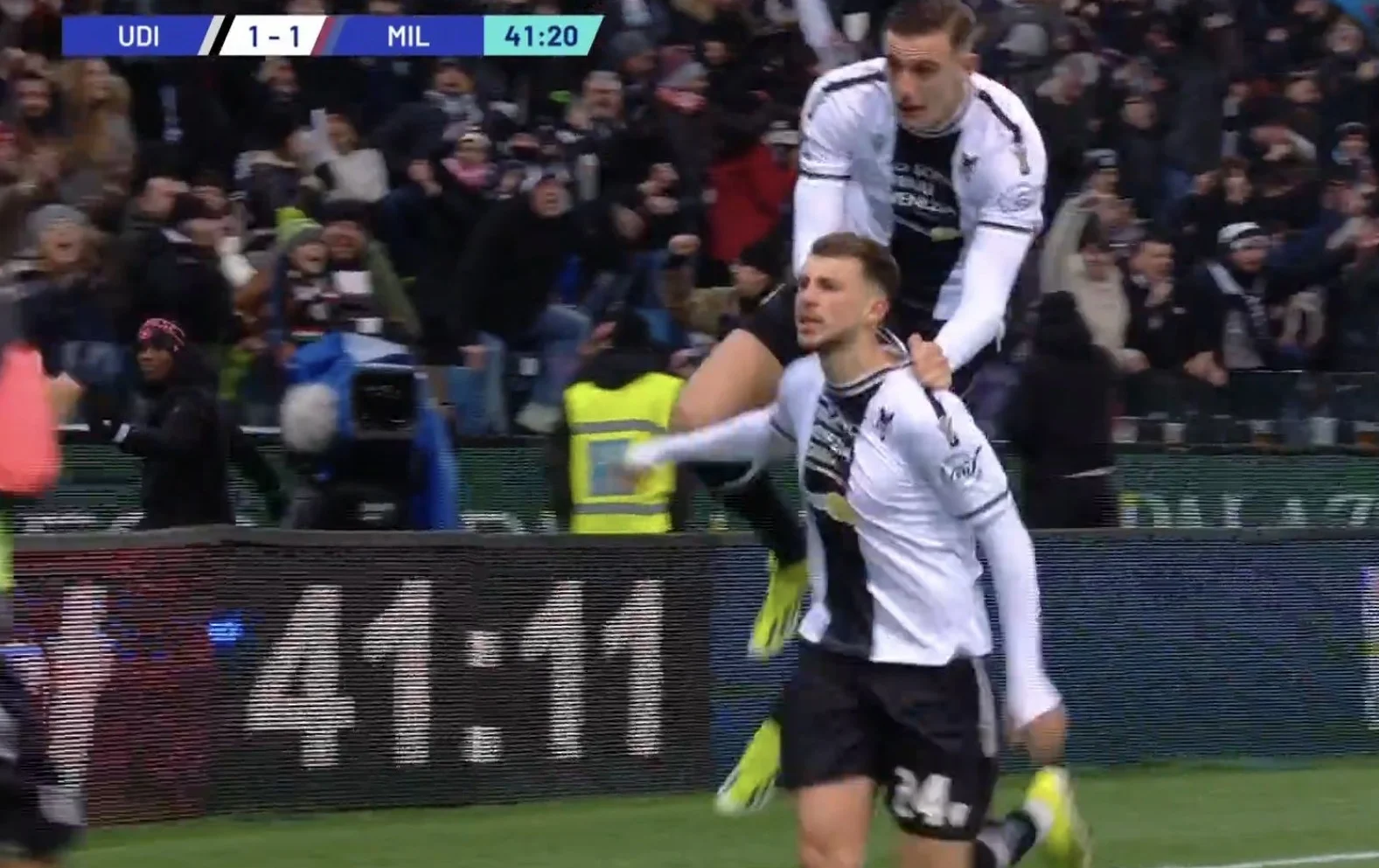 Розвинути успіх "россонері" не встигли. Гру довелося зупинити через свавілля фанів Удінезе, які ображали Меньяна. Голкіпер Мілана спочатку просив арбітра владнати ситуацію, а потім демонстративно пішов з поля. Майк не хотів повертатися, але команда переконала грати далі. Після 10-хвилинної затримки матч відновили. У підсумку, пауза допомогла господарям. Підопічні Піолі втратили концентрацію й миттєво отримали покарання. В опорній зоні ніхто не зупинив Самарджіча, який розкішним ударом у ближній кут зрівняв рахунок. У Меньяна не було шансів врятувати.