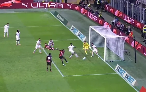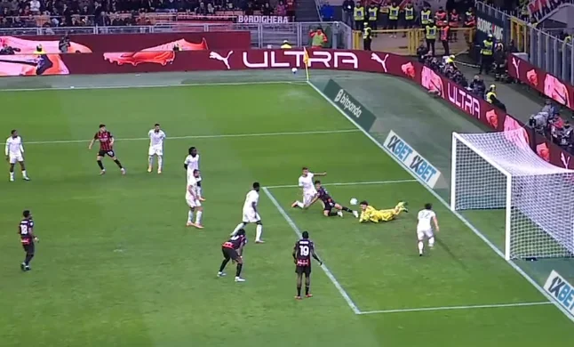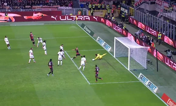 Мілан до того часу нічого цікавого не створював. "Россонері" відверто провалювали тайм, завдавши три удари із сумарною гостротою в 0,3 xG. Рома до того часу провела вже десяток ударів, маючи 0,74 xG. Здавалося, що гості ось-ось дотиснуть пасивних господарів.