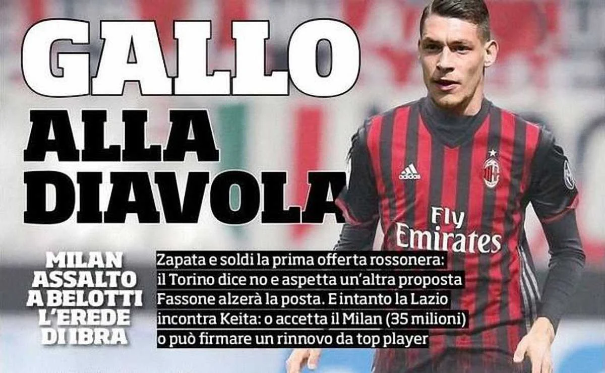 Як інформує Sky Italia, керівництво "россонері" зробило офіційну пропозицію Торіно щодо Белотті на рівні 45 мільйонів євро. "Бики" не проти віддати свого лідера, але вимагають 70 мільйонів євро плюс Юрая Куцку та Мбайє Ньянга.