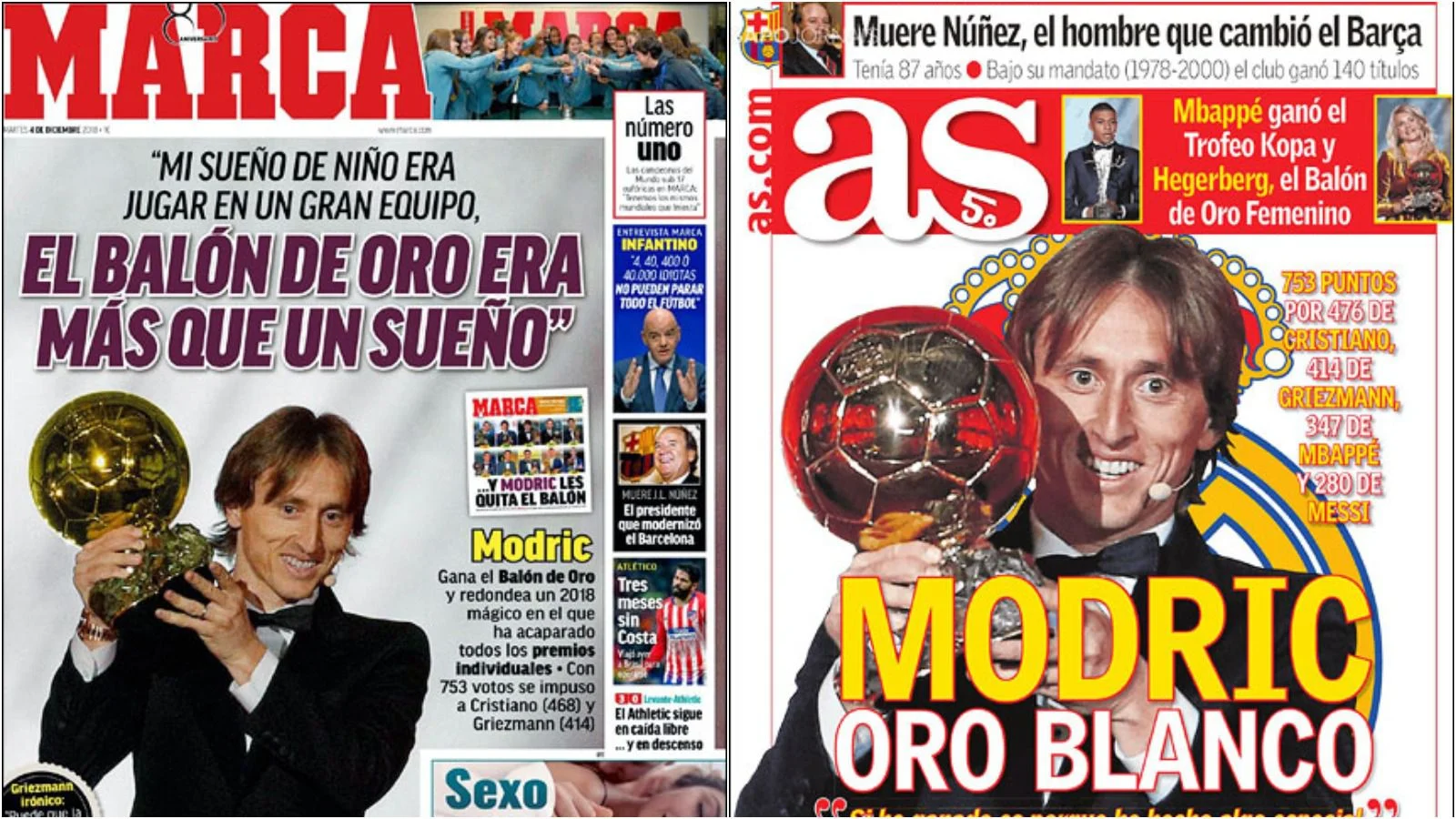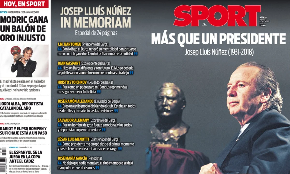 Каталонські видання спробували применшити успіх гравця ненависного їм Реала. Mundo Deportivo влаштувало справжній ігнор, віддавши всю обкладинку темі смерті легендарного президента Барселони Нуньєса.