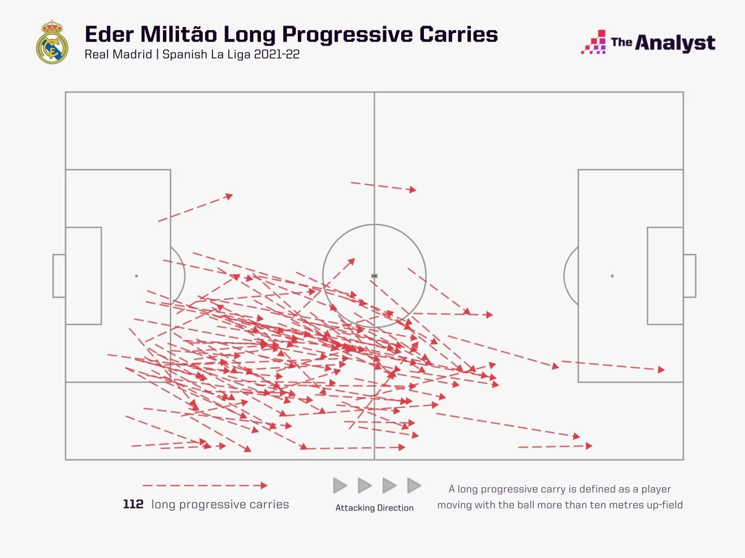 Разом з тим, Мілітао активно працював і на розвиток атаки. Іноді бразилець підіймався аж на позицію форварда (як Серхіо Рамос свого часу), причому він приходив туди не просто так. В активі Едера 454 просування з м'ячем (входить у топ-6 центрбеків Ла Ліги) та 96 залучень до атак, які завершились ударами – це рекорд сезону.