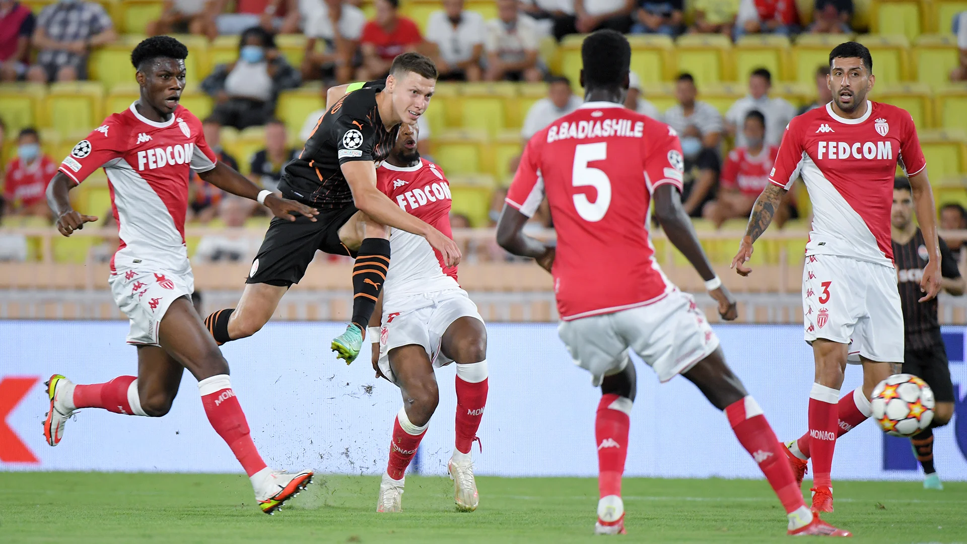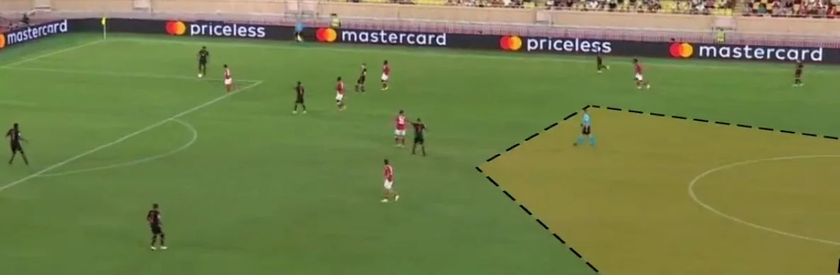 Степаненко привозить неприємності на свої ворота, пригадуючи агресію Інтера у пам'ятному півфіналі ЛЄ. Боаду пробиває у стійку. Траоре вдруге загубив перспективний момент мінімальним офсайдом. Повний хаос після кутових і штрафних Монако. Марлон дивом витягує снаряд у повітрі з-під суперника. Степаненко заробляє першу жовту в матчі. Паніка, яку намагаються збити замінами. Сікан і Марлос замість Траоре та Тете на останній хвилині основного часу. Жовта ще й Алану Патріку. Великий позитив у тому, що другий поспіль матч звели до сухої перемоги, чого при Де Дзербі ще не було. Однак, якби не натхненна гра Трубіна, все могло скластися інакше.