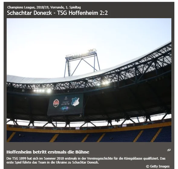 У Хоффенхаймі лише 3200 мешканців – це найменше представництво з усіх клубів, які стартували в Лізі чемпіонів. Однак Хоффе показав місцями сильну гру, хоча й втратив перемогу над Донецьком. "Ми не зрозуміли, що опинились тут вперше", – оцінив дебют в ЛЧ спортивний директор клубу Александр Розен. Хоффенхайм показав переконливий футбол, але знову був покараний за марнування гольових моментів. Клуб все ще чекає своєї дебютної виїзної перемоги в єврокубках, адже в минулому році провалився в Лізі Європи.