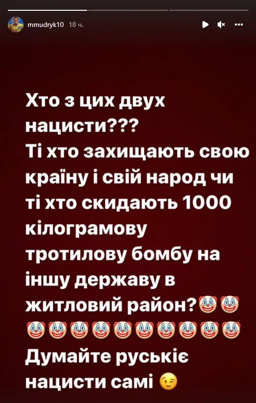 Півзахисник Шахтаря Михайло Мудрик знову звернувся до росіян, які підтримують кривавого тирана і вбивцю Володимира Путіна.