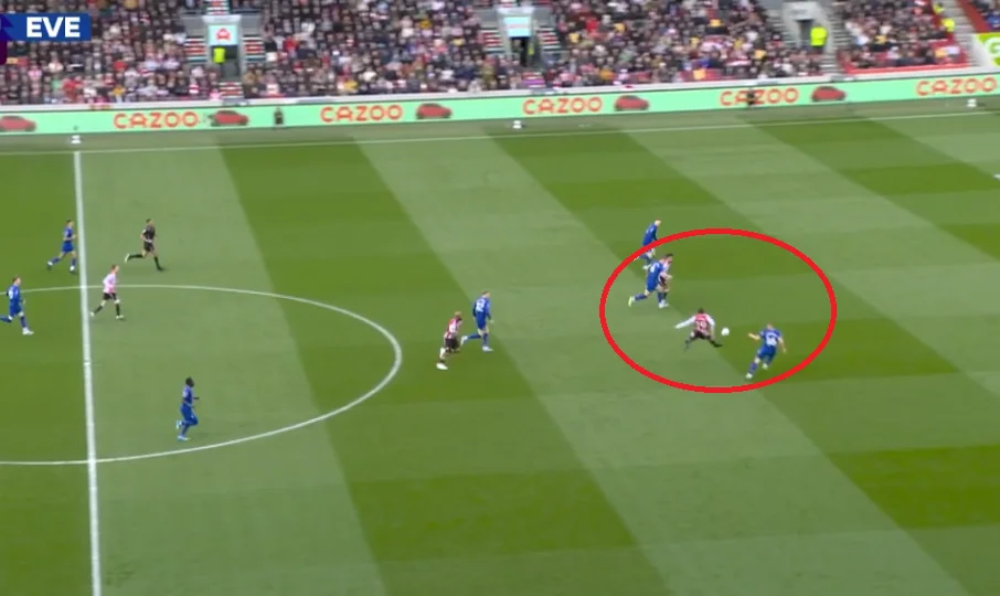 Пропущений гол змусив Брентфорд прокинутись. На 34-й хвилині Єнсен пробивав з лівого кута штрафного в ближню дев'ятку (Пікфорд парирував), а на 38-й стався кутовий із влучанням Шаде в поперечку. Добивання від Уаттара взяв Пікфорд – до речі, Данго стріляв з-під Миколенка.