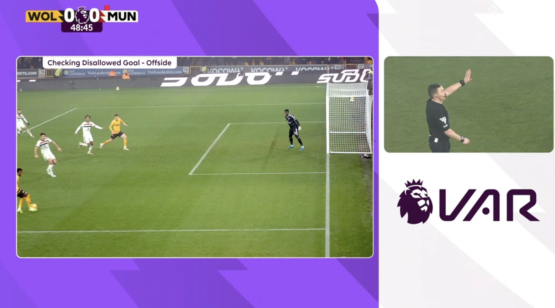Одразу після цього Вулверхемптон забив гол (Ларсен замкнув крос від Семеду), але взяття воріт не зарахували через офсайд.