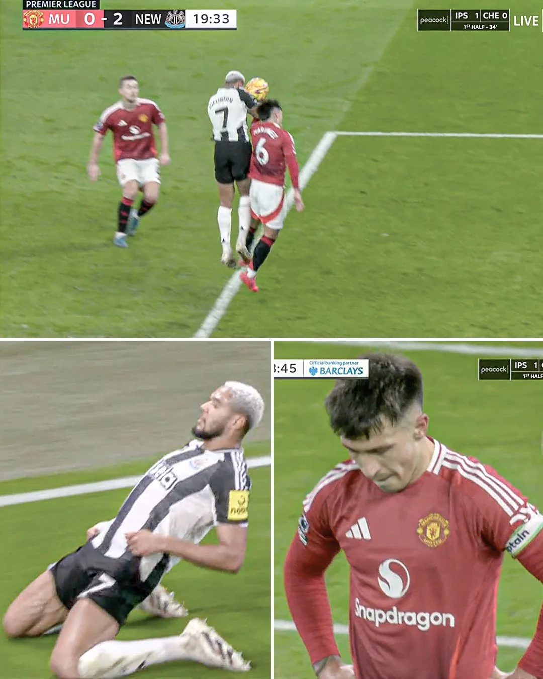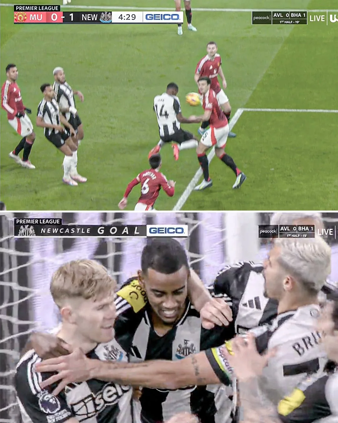 Ньюкасл шокував господарів швидким голом. Холл, після прекрасного переведення від Гімараєса, знайшов на лінії воротарського Ісака, а той пробив головою без шансів для Онана. Магвайр і Мартінес загубили шведського бомбардира, Каземіро вимагав у партнерів пояснення, поки VAR намагався розгледіти офсайд, та гості розіграли усе ідеально.