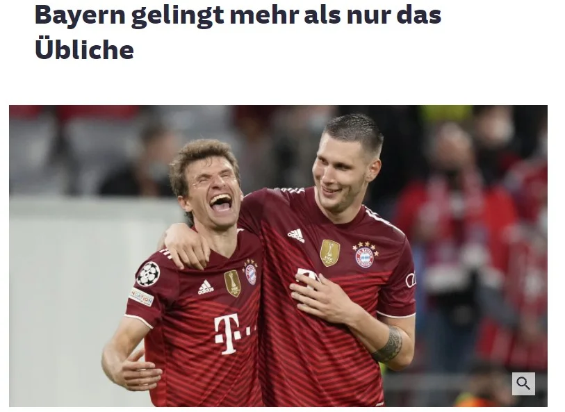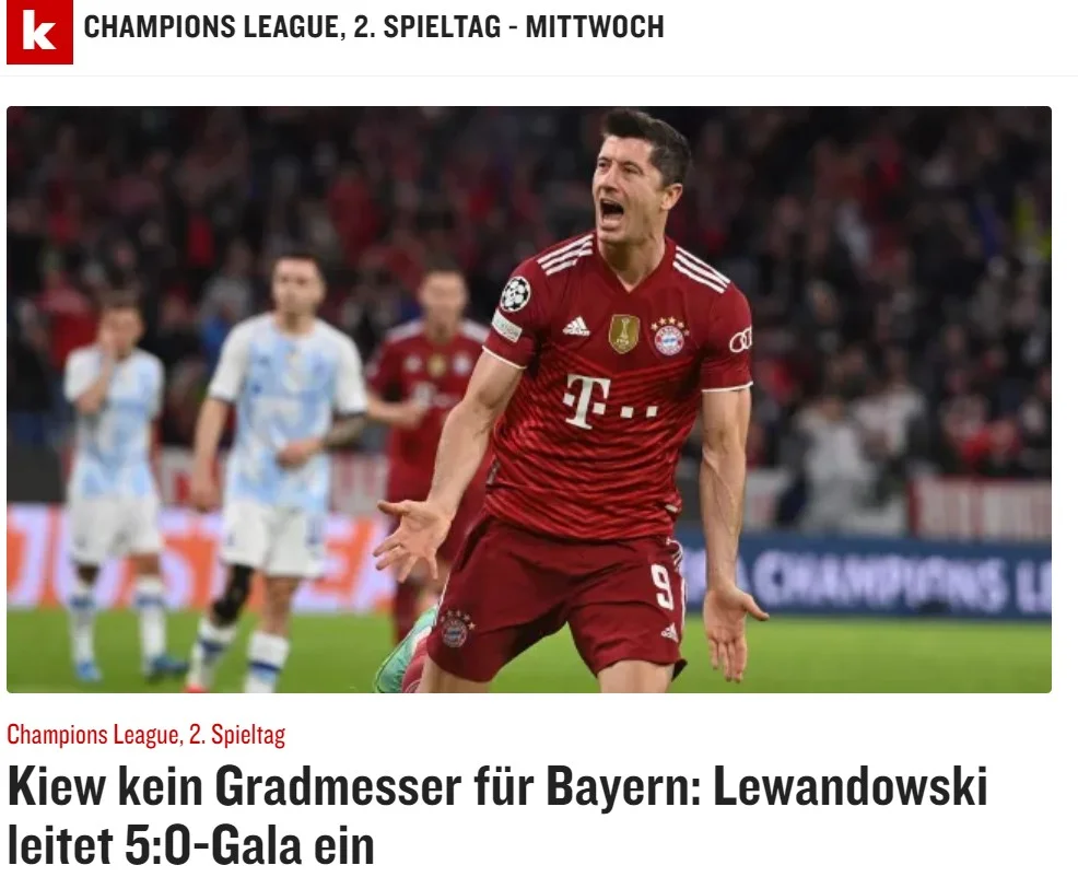 Команда Нагельсманна відразу захопила ініціативу та нарощувала тиск, однак у першому таймі проявлялися нерви. Безпосередньо перед перервою Баварія дала українцям чудовий шанс і заодно можливість Нойєру продемонструвати клас, потягнувши удар Де Пени. По перерві мюнхенці виглядали переконливіше, наростили перевагу та досягли успіху", – резюмує головне спортивне видання Німеччини.