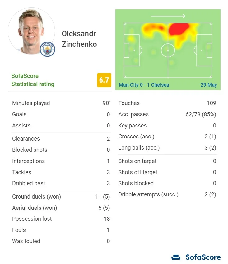 Зінченко закріпився в статусі основного лівого захисника Манчестер Сіті, тому його поява в стартовому складі на головний матч сезону була очікуваною. Але завдання Олександра у фіналі ЛЧ залишалося загадкою – залежно від ситуації Пеп дає йому дуже різні функції. У двох попередніх поєдинках з Челсі українець майже не грав, тому доводилося лише здогадуватися.