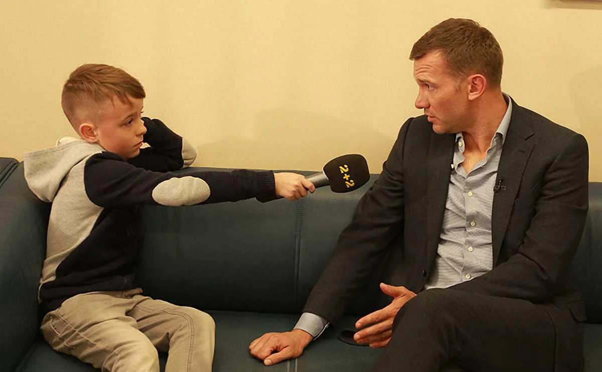 І нарешті, дочекалися. Андрій Миколайович спочатку приділив час юному футбольному вболівальнику Міші, який за допомогою хлопців з "2+2" записав з тренером збірної повноцінне інтерв'ю, а вже потім настала черга "Футбол 24".