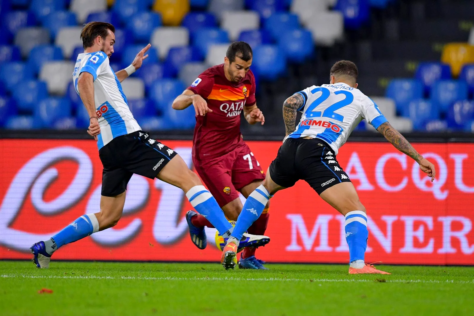 Прикрим є той факт, що неаполітанці не дуже-то й тиснули – у них було всього 4 проникних паси (проти 5 у римлян), вони тримали м'яч всього 55% ігрового часу і вдосталь дозволяли грати на власній третині поля. При цьому середня інтенсивність пресингу виявилася не тільки низькою (18,88 PPDA), а й нижчою, ніж у римлян (17,31 PPDA). За єдиноборствами та обіграшами на дриблінгу перевага господарів виявилась мінімальною.