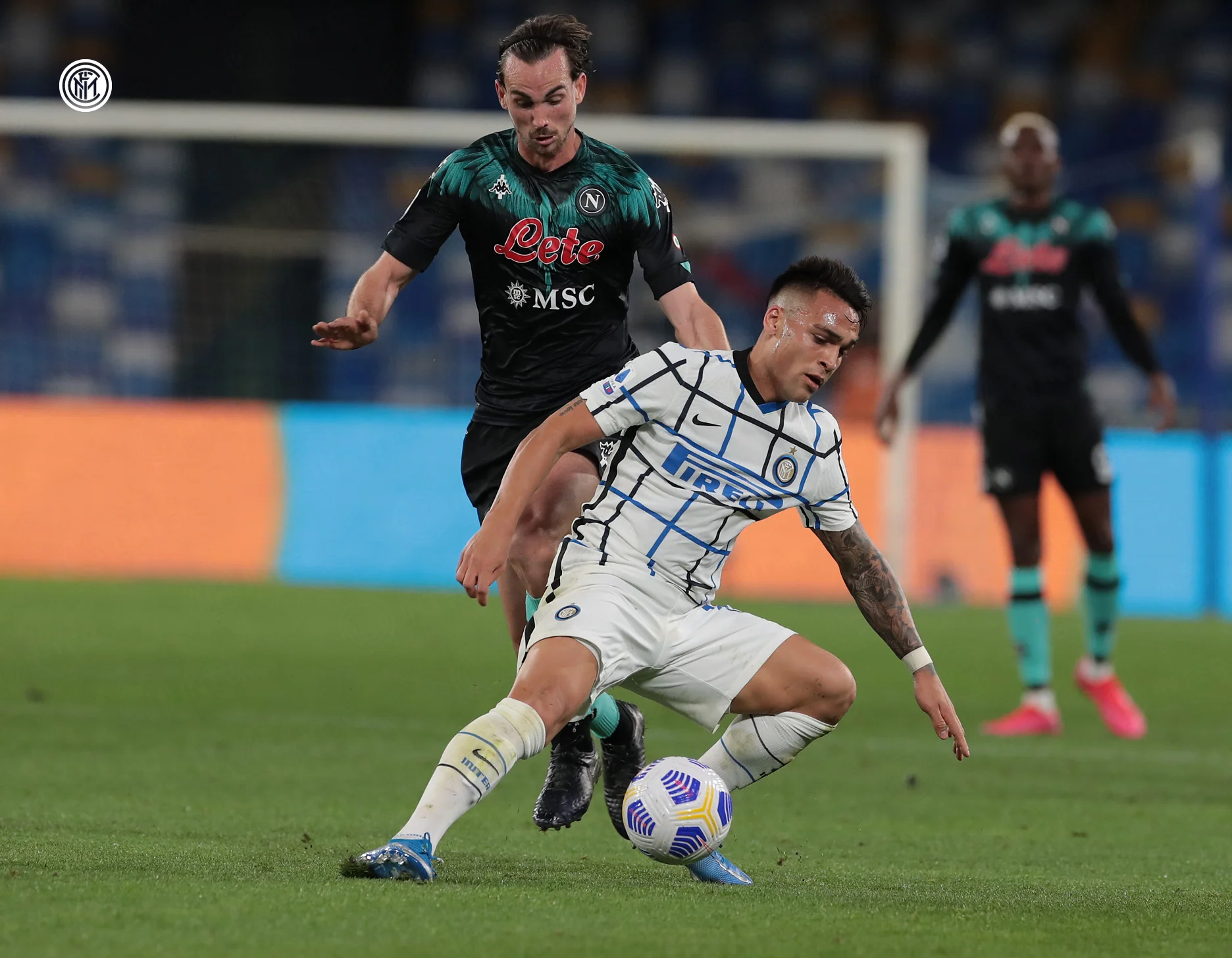 Інтер не знітився. Одразу з початком другого тайму міланці пішли уперед, організувавши низку небезпечних передач та кросів у карний майданчик. Наполі тримався, а на 50-х хвилинах підопічні Ріно Гаттузо взагалі перейшли на чужу третину поля. Саме в цей момент гості й підловили партенопейців: на 55-й Манолас вибив простріл Дарміана з лівого флангу, а Еріксен, підхопивши відскок, завдав потужного удару з лінії штрафного – точно в дальній кут! 1:1.