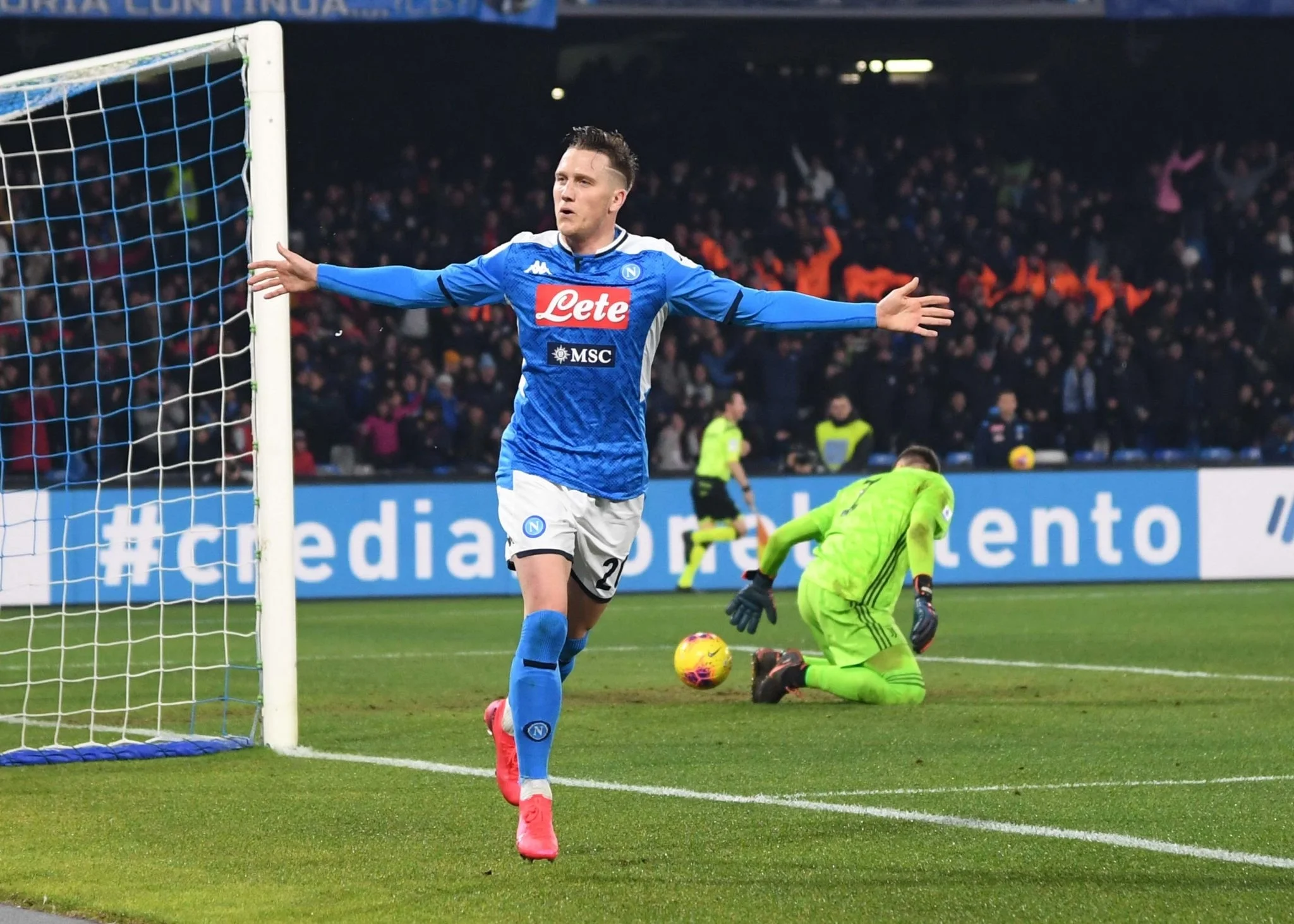 Було помітно, що обидві команди націлились на перемогу. Темп піднявся, і вже на 62-й хвилині Ювентус міг відкривати рахунок: Дибала та Роналду розігнали контратаку з пасом на правий край штрафного, звідки бив Ігуаїн – Мерет врятував Наполі! Відповідь господарів шокувала туринців: Інсіньє на 63-й наважився на дальній удар, Щенсни парирував його у бік, однак на м'ячі опинився Зєлінскі – Пйотр тут же переправив сферу у сітку. 1:0! Втім, вже на 68-й хвилині після подачі зі стандарту та скидки Роналду міг забивати Ігуаїн. Мерет випередив аргентинця буквально на мить.