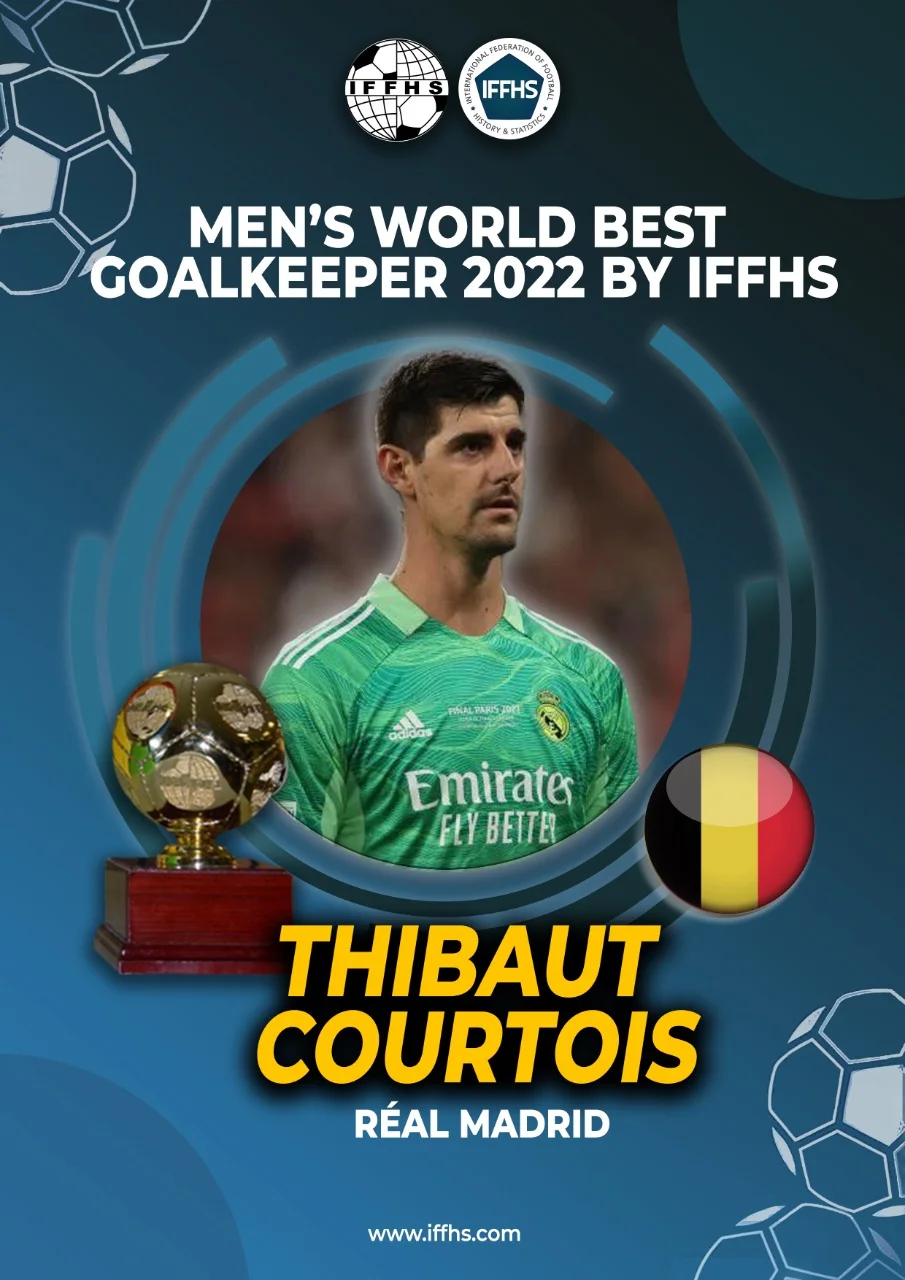 Голкіпер Реала Тібо Куртуа вдруге в кар'єрі став найкращим воротарем року за версією IFFHS. Хто увійшов у топ-10 за підсумками 2022-го – читайте в цій новині на "Футбол 24".
