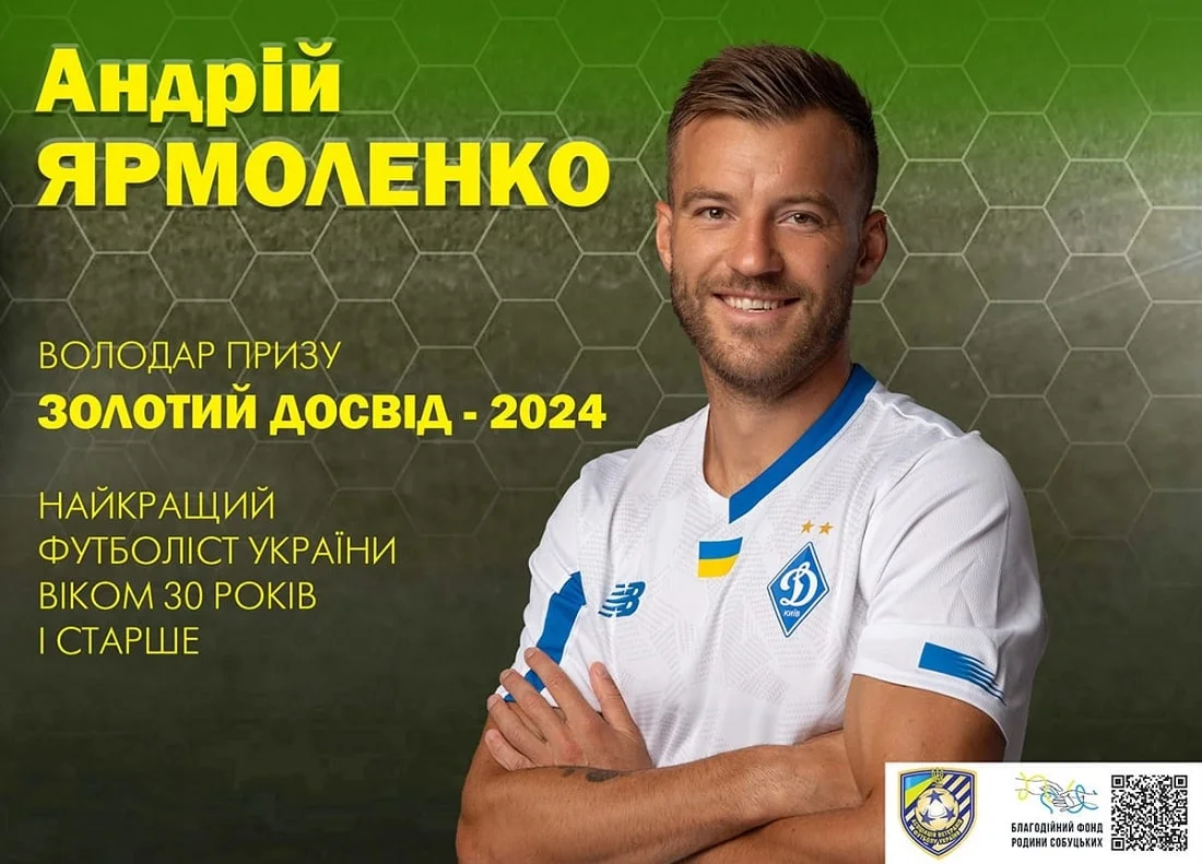 Півзахисник київського Динамо та національної збірної України Андрій Ярмоленко став переможцем референдуму "Золотий досвід", який організувала Асоціація ветеранів футболу України.