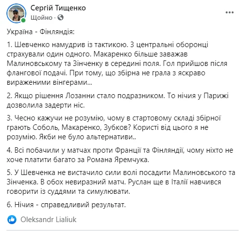 Сергій Тищенко, журналіст Gazeta.ua і Футбол 24, настільки ж принциповий.